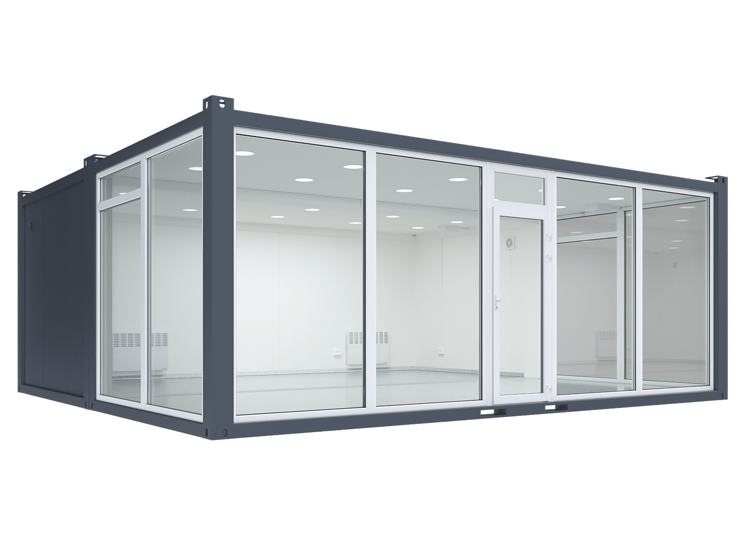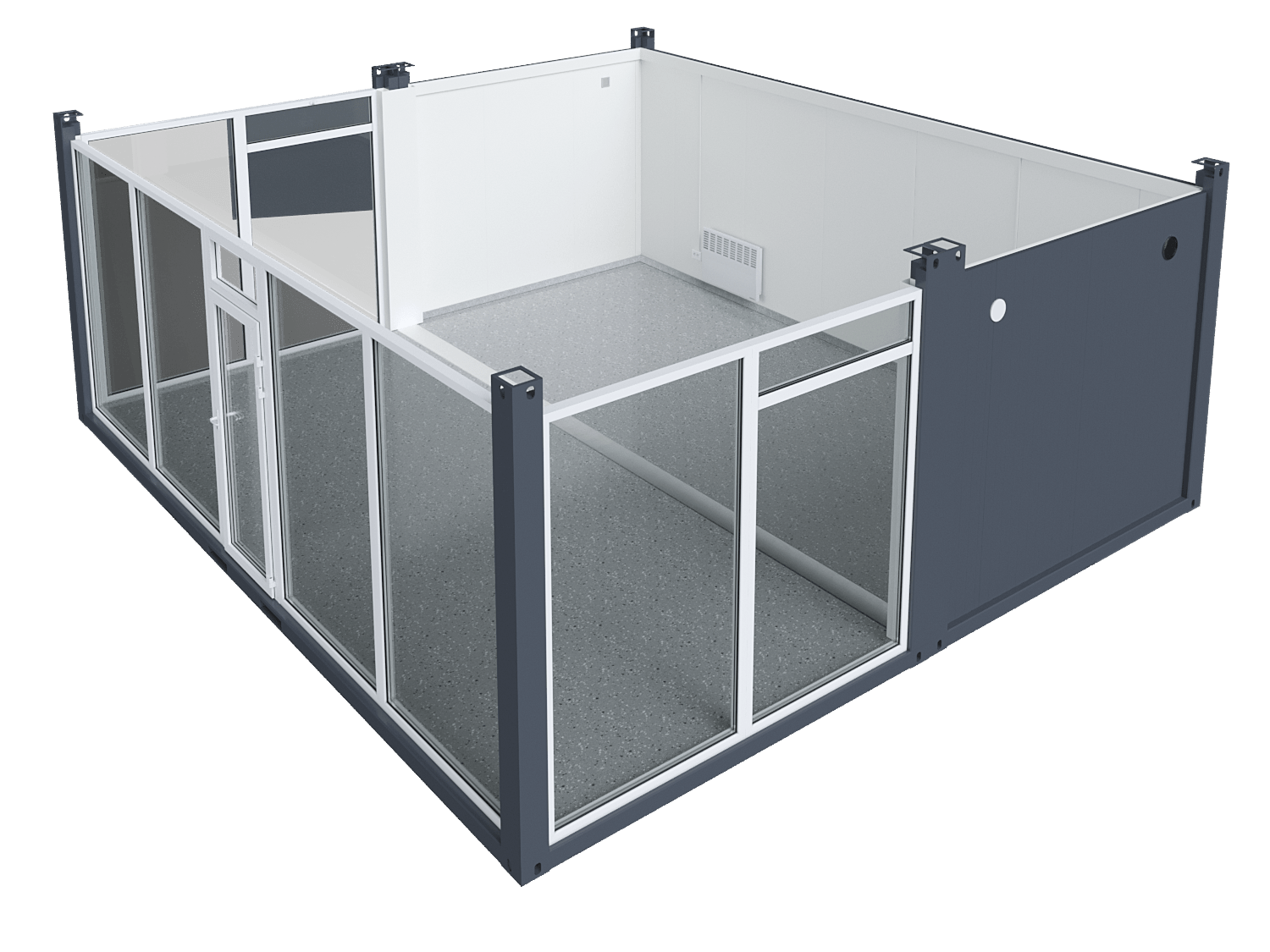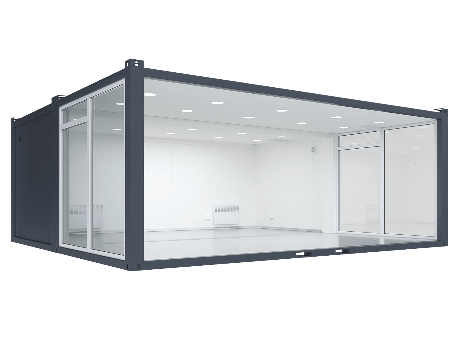 Double Space Modular Unit with 3 Glass Walls – Spacious, Modern, and Light-Filled Container Solution